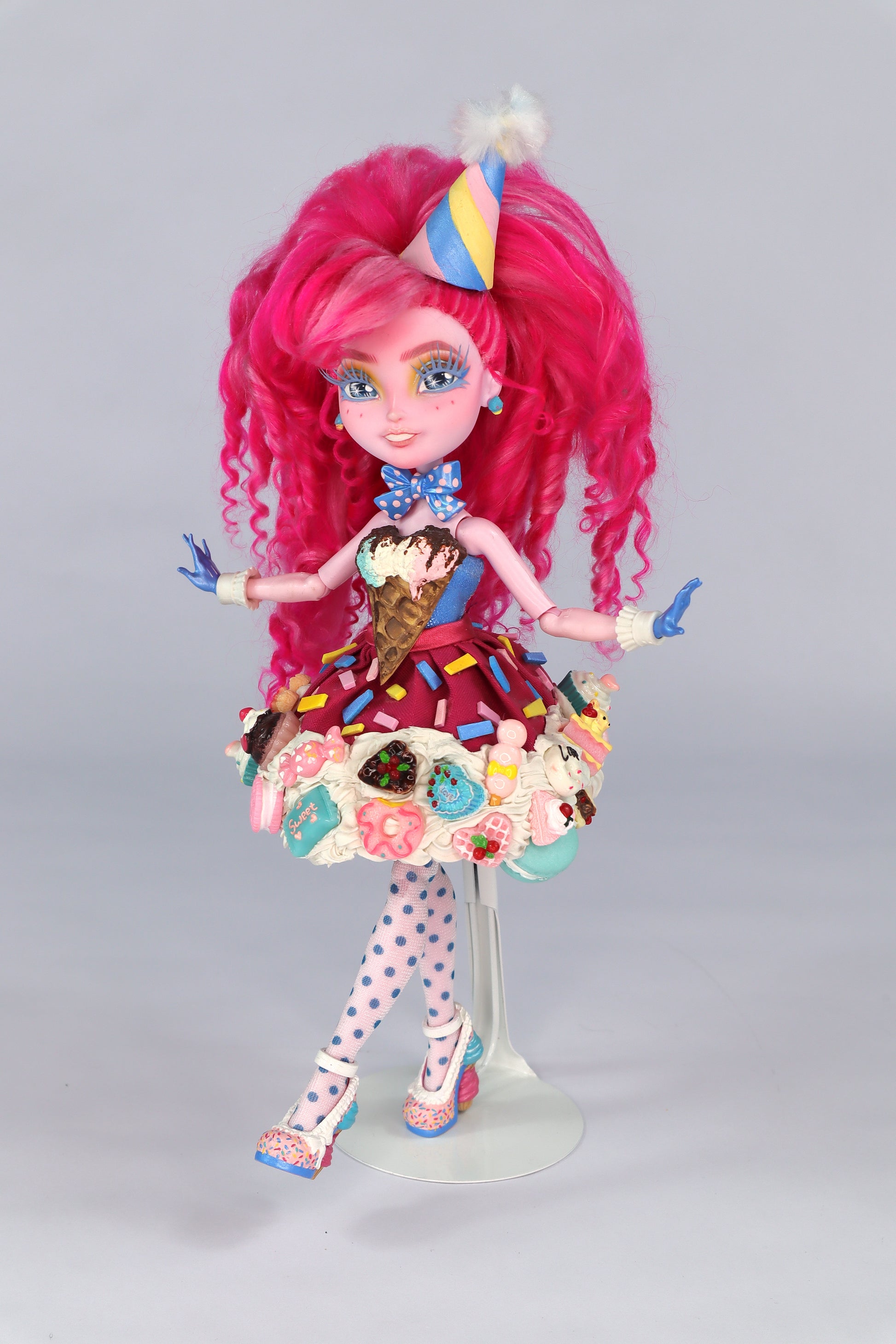 Custom painted face, hairstyle, and outfit.
