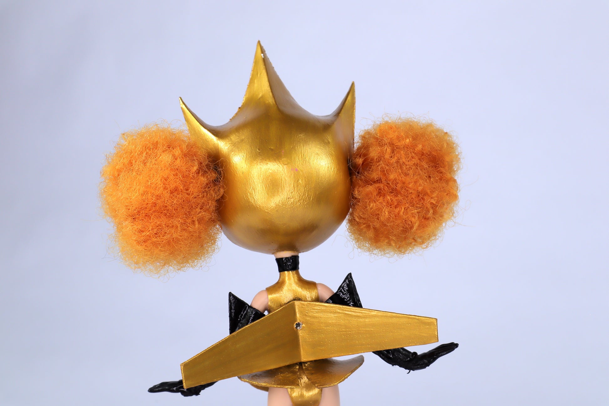 Hand-sculpted outfit. Fragile doll, but still striking.